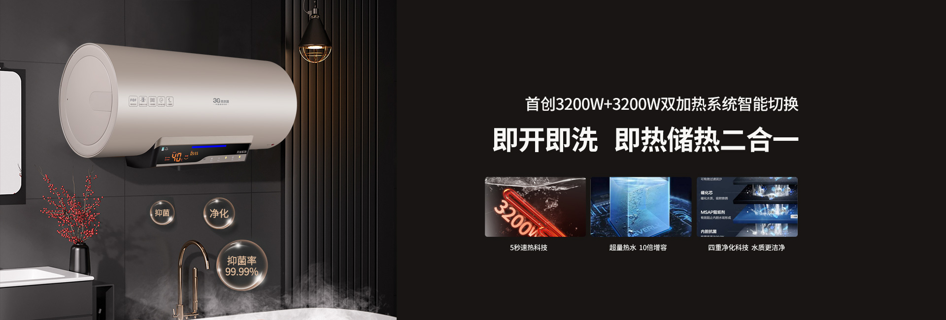 • 3000W速熱+3000W儲熱雙加熱系統:速熱儲熱2合1,快速升溫、3-5分鐘可洗。健康活水機:前置凈水+360°內膽自助清洗+三效抑菌 抑菌率99.99%。